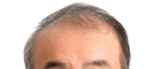 額の両端の毛を残して中央から髪の毛が減っていきます。